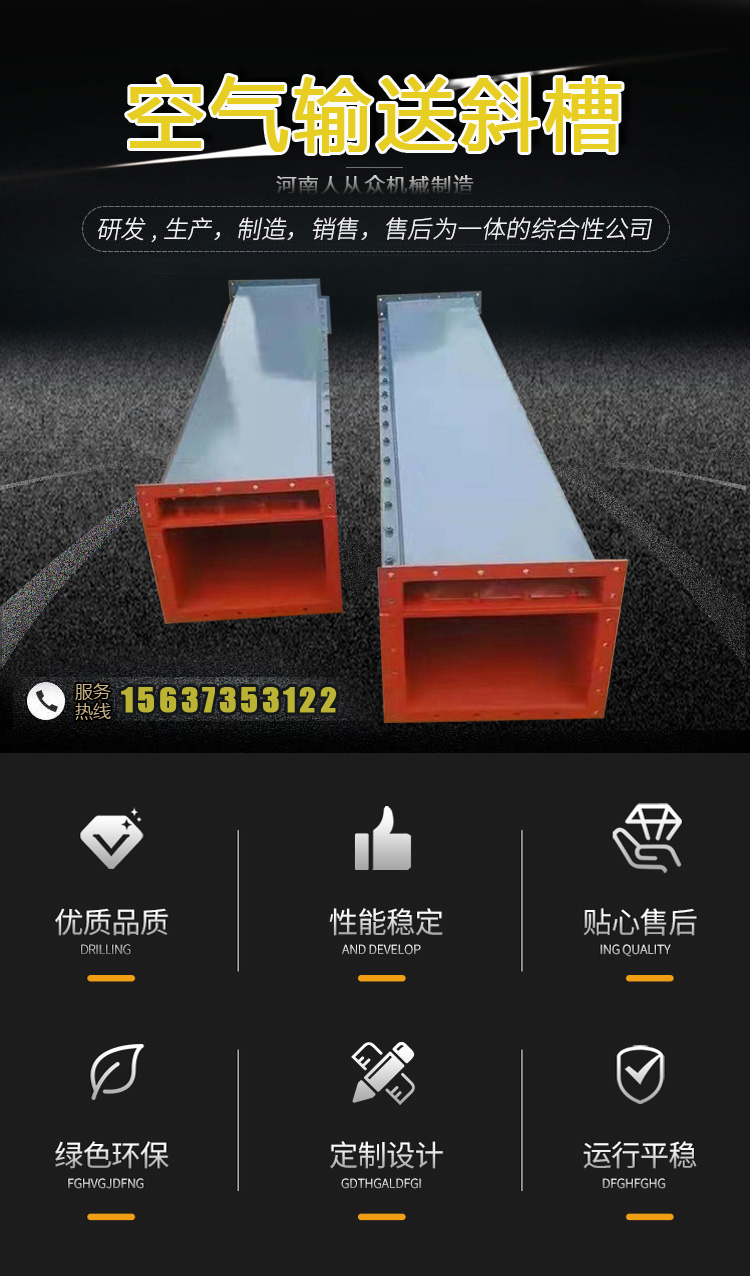 空氣輸送斜槽是通過氣流順管道輸送粉末顆粒物料的裝置。有三種類型:吸入式、壓力式和混合式。其工作原理是利用氣流的動能使顆粒物料隨氣流沿管道懸浮輸送;設備主體部分無傳動部分,采用新型涂層,便于密封操作和管理。