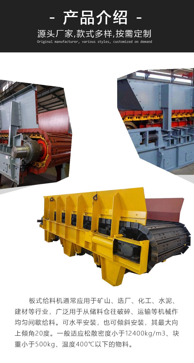 板式給料機是一種連續性給料設備,適用于短距離塊狀物料的輸送,適合礦山、化工、水泥、建材等行業。