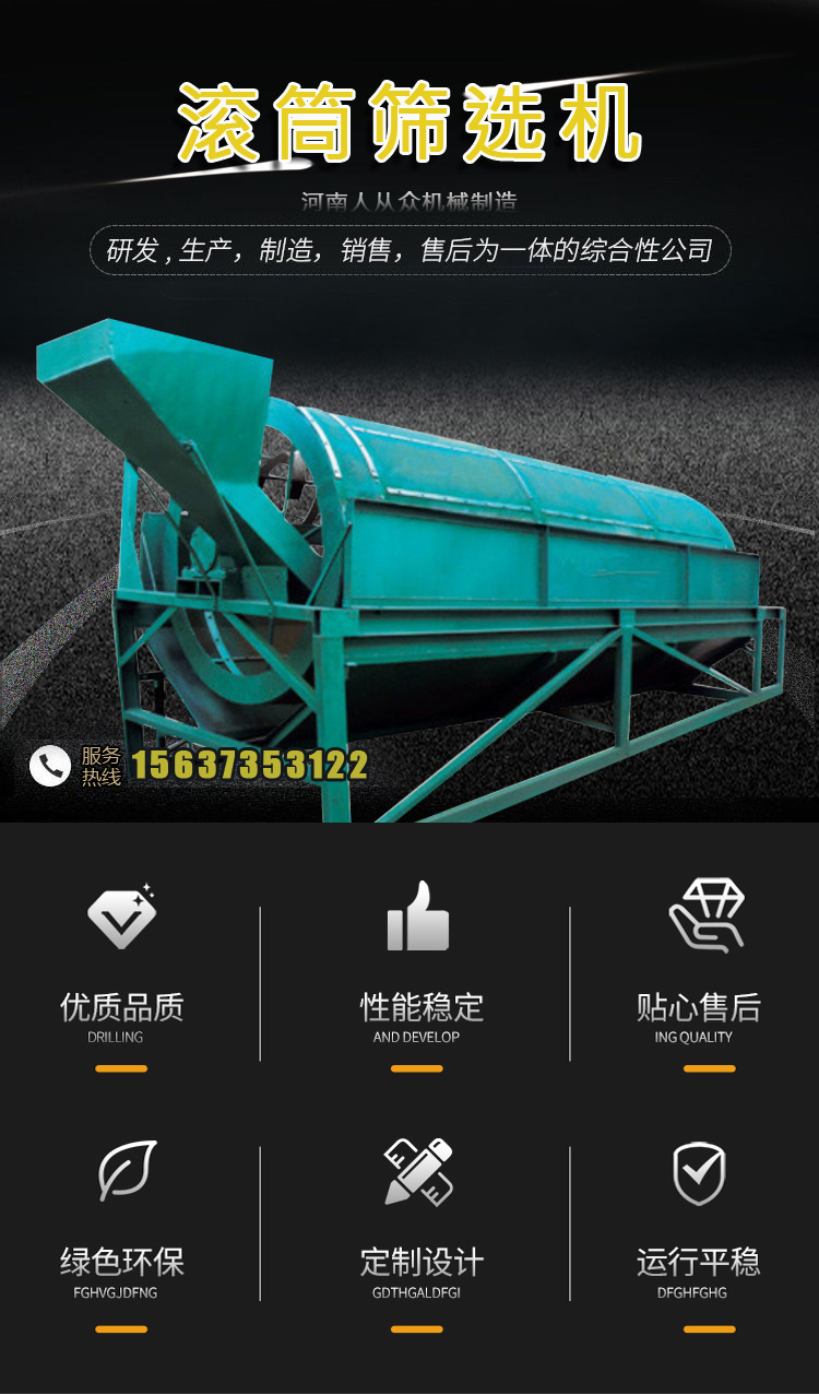 滾筒篩分機適用于紅棗篩分、大棗核桃干果大小分選篩選機,刨花鋸末顆粒篩分、各種家畜有機肥的篩分設備,歡迎來電咨詢定制