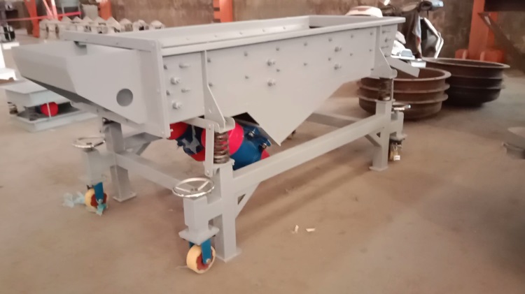 客戶定制ZXS-0718直線篩:普鋼材質(zhì),篩板為不銹鋼沖孔板(δ=3mm 25*25mm孔),裝萬(wàn)向輪,電機(jī)功率0.37kw*2 電壓220V;
