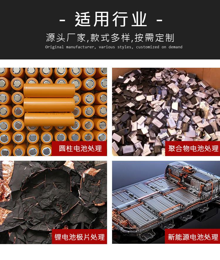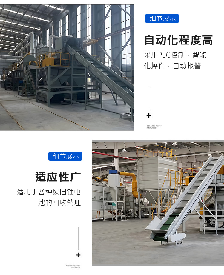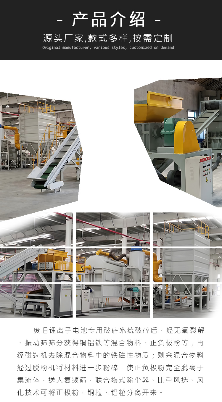 廢舊新能源鋰電池回收處理設(shè)備,鋰電池破碎分選設(shè)備生產(chǎn)線, 全程智能化流水線作業(yè)。