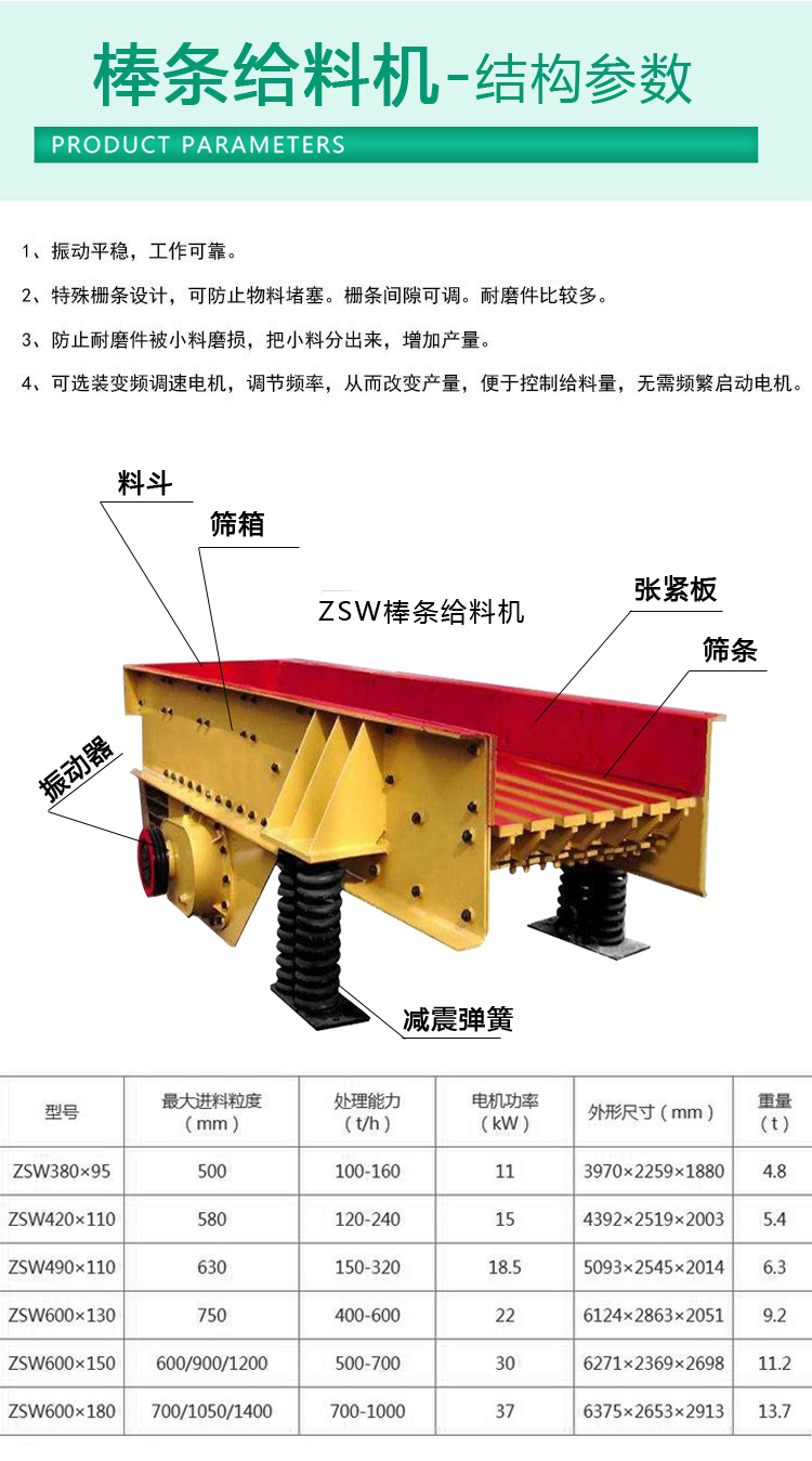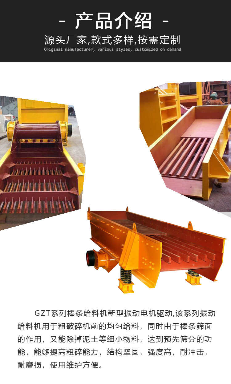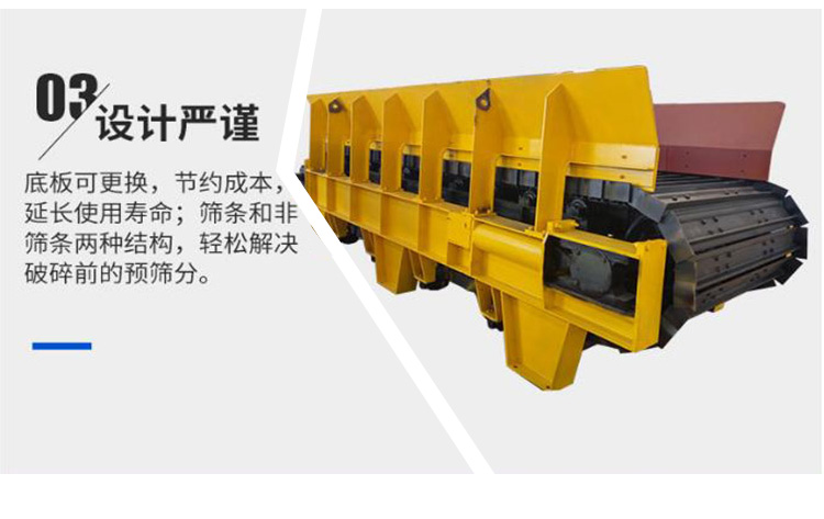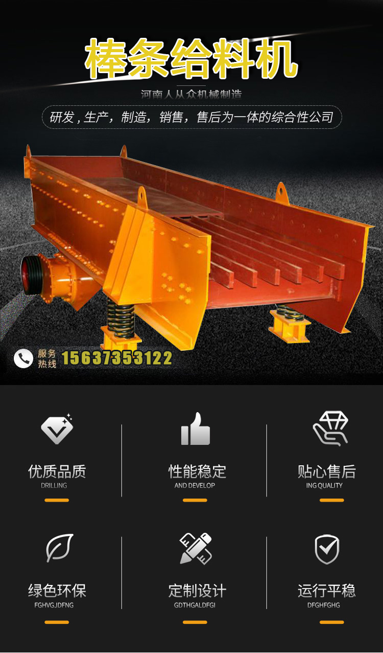 棒條式振動給料機由新型振動電機驅動,通常用于粗碎機前的均勻給料,它可以去除土壤等細料,實現(xiàn)預篩功能,提高粗碎能力,結構堅固,強度高,耐沖擊,耐磨,使用維護方便。