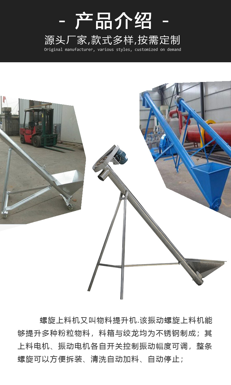 不銹鋼螺旋輸送機主要用于輸送顆粒狀粉末材料。適用于化工、食品、建材、包裝等行業對喂料要求較高的設備。它具有速度快、精度高、應用廣的特點。
